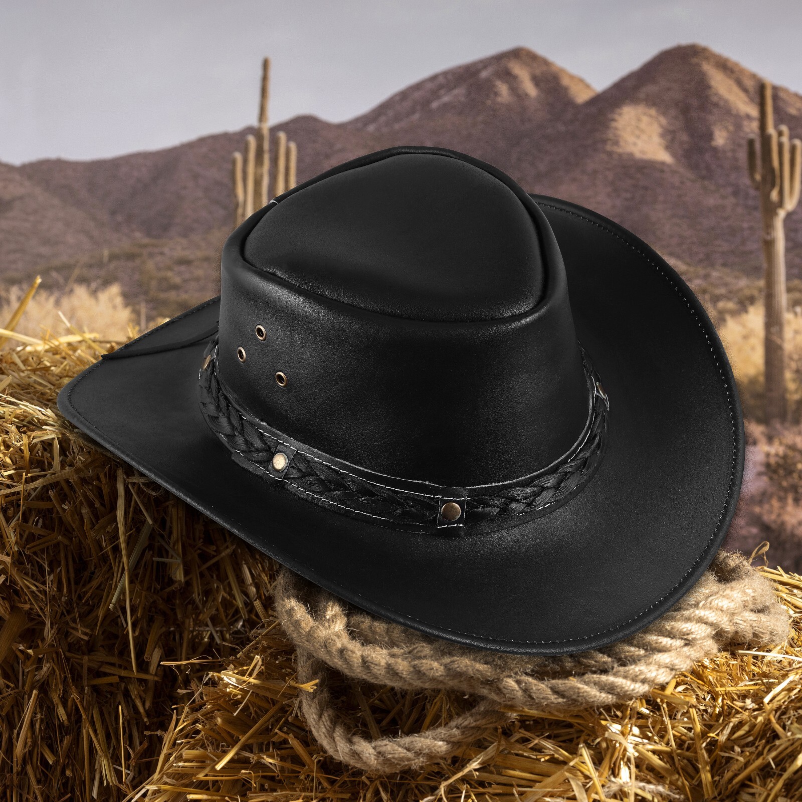 как выглядит Western Style Genuine Leather Cowboy hat for Men and Women Shapeable - Wide Brim фото