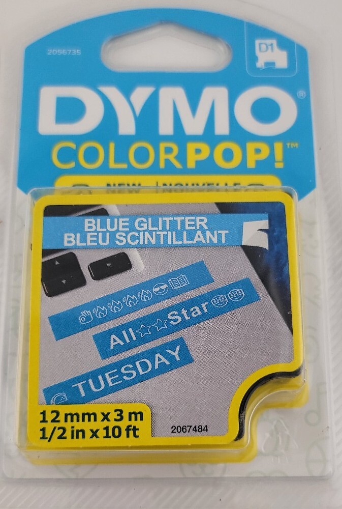 NEW - DYMO COLORPOP Authentic Label Maker Tape, 1/2 W x 10' L Blue Glitter