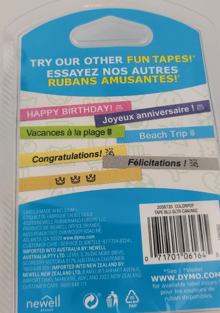 как выглядит NEW - DYMO COLORPOP Authentic Label Maker Tape, 1/2" W x 10 L Blue Glitter фото