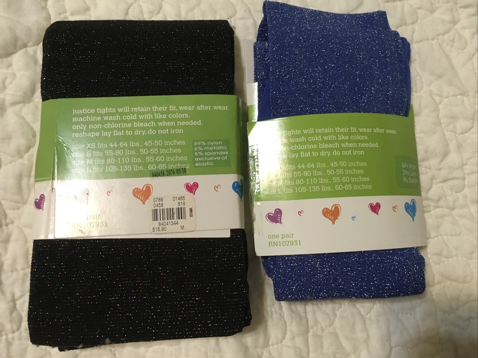 Two pairs new nwt Justice sparkly ankle tights black And Blue size medium girls