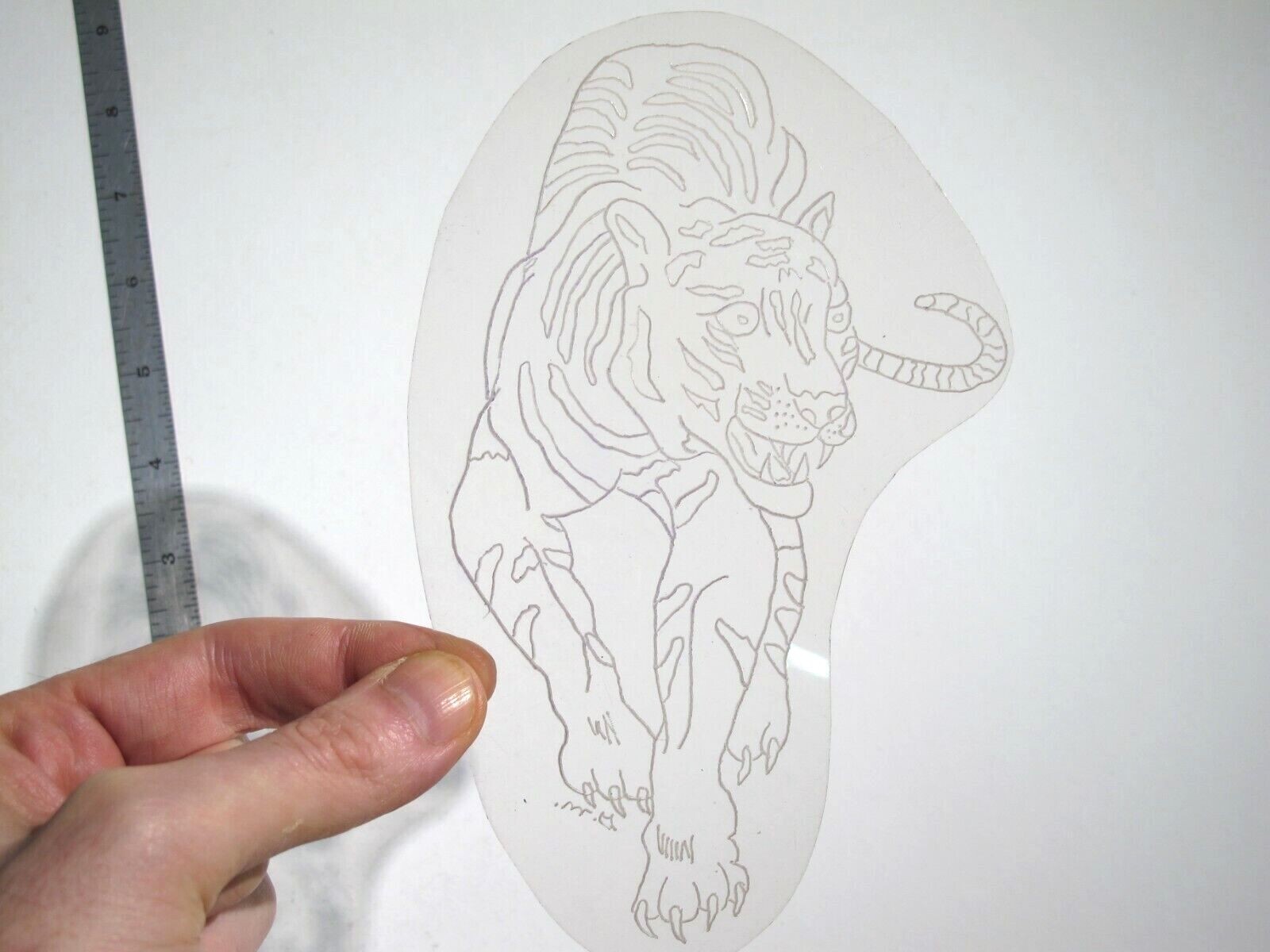 vtg 1960s 1970s Tattoo Flash acetate stencil Front View Tiger signed LT2