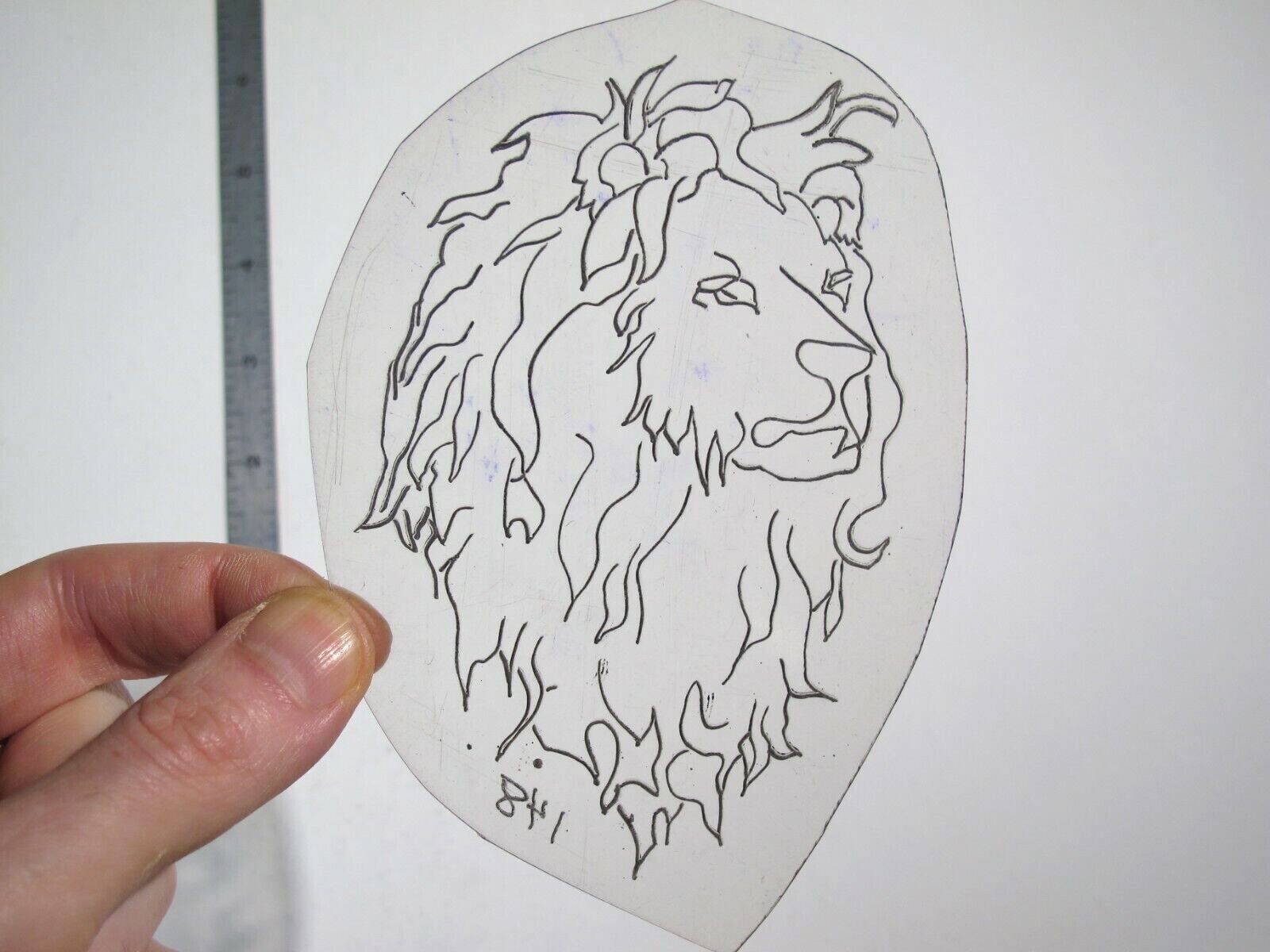 vtg 1960s 1970s Tattoo Flash acetate stencil 3/4 Lion Head v2 LT2