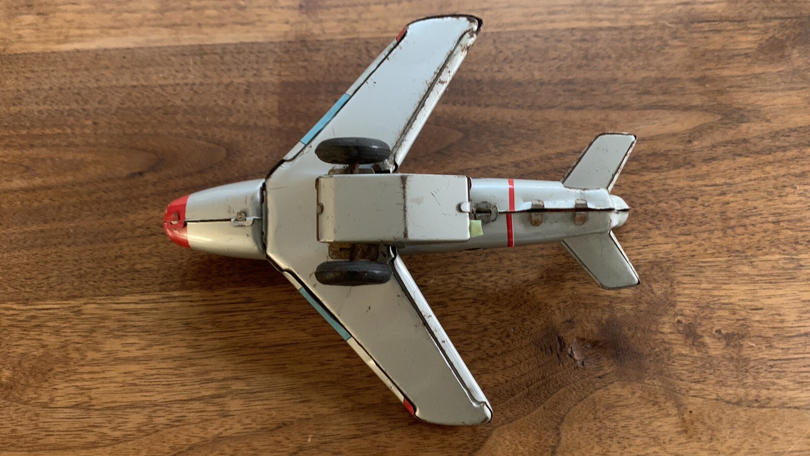 как выглядит Vintage MARX Tin Friction Air Force Fighter Jet Airplane фото