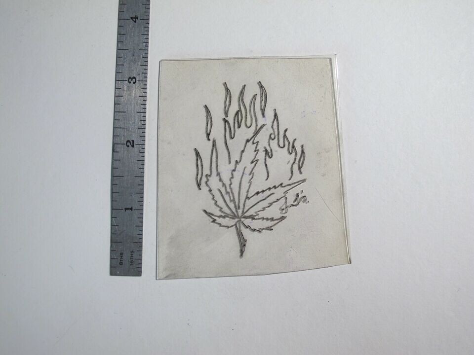 vtg 1960s 1970s Tattoo Flash acetate stencil Weed Flaming Pot Leaf signed WEED1