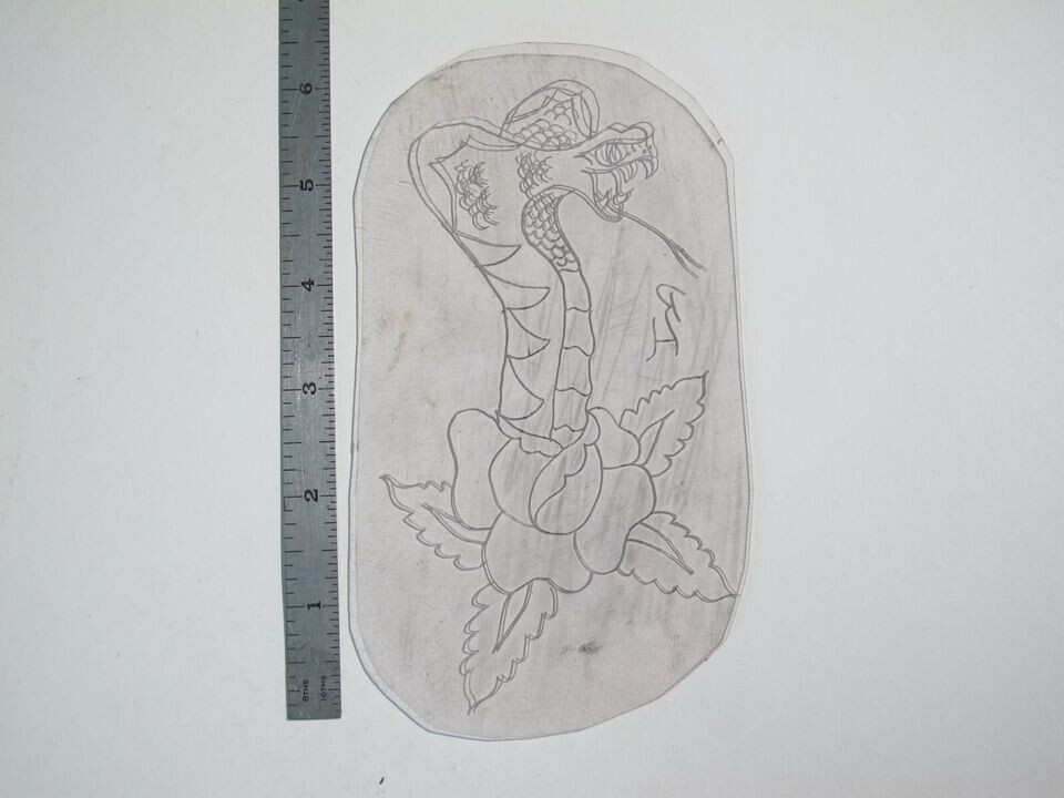 vtg 1960s 1970s Tattoo acetate stencil Adder coming out of Flower signed v2 SN2