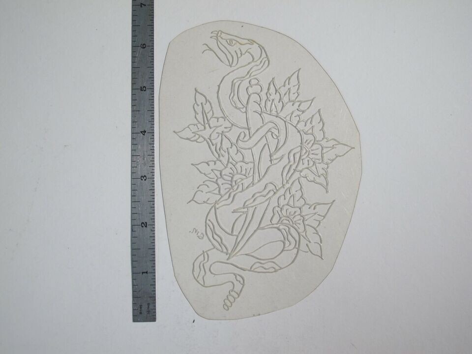 vtg 1960s 1970s Tattoo acetate stencil Snake Dagger and Flowers signed SN2