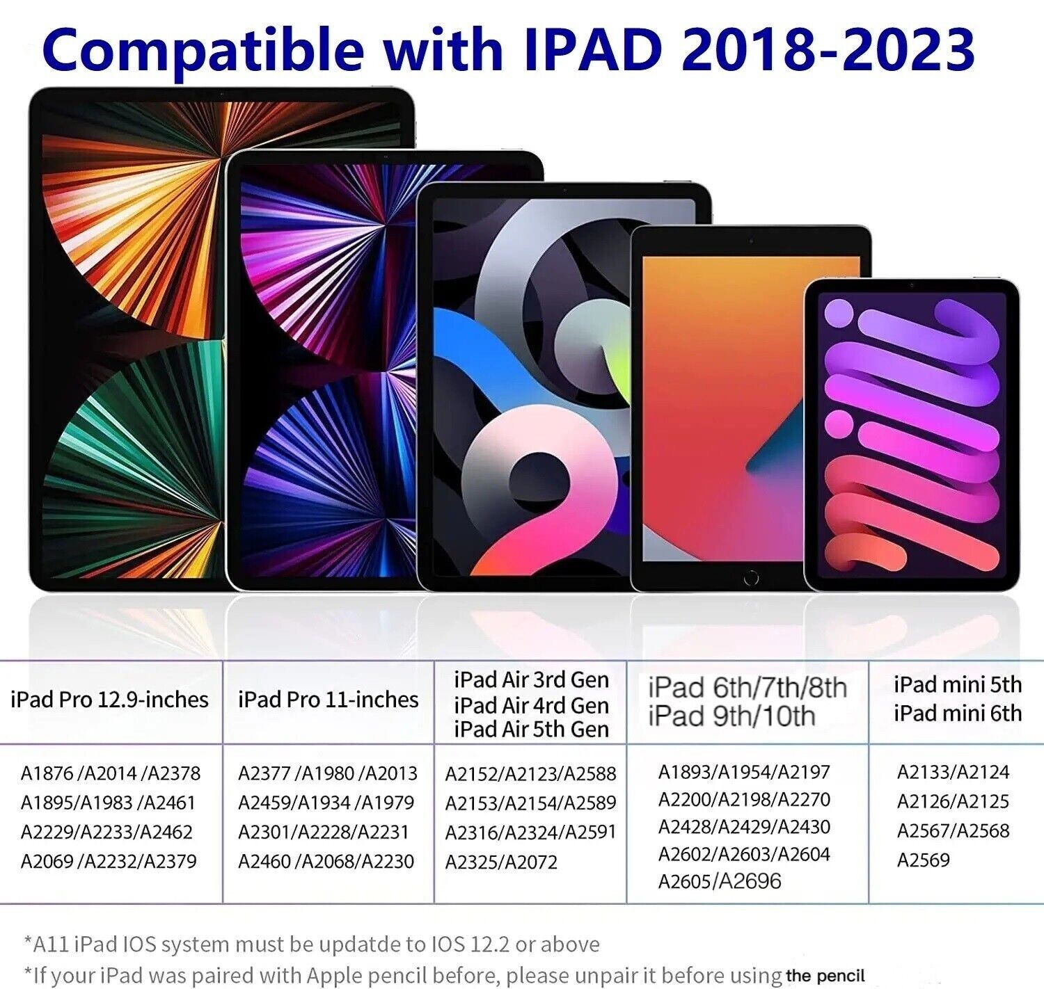 Совместимая модель: For Apple iPad(10th Generation), For Apple iPad Pro 12.9 6th, For Apple iPad Pro 12.9 5th, For Apple iPad Pro 12.9 4th, For Apple iPad Pro 12.9 3rd, For Apple iPad (6th Generation), For Apple iPad (7th Generation), For Apple iPad (8th Generation), For Apple iPad (9th Generation), For Apple iPad Air (3rd Generation), For Apple iPad Air (4th Generation), For Apple iPad Air (5th Generation), For Apple iPad Air 6, For Apple iPad Pro 11, For Apple iPad mini (5th Generation), For Apple iPad mini (6th Generation)