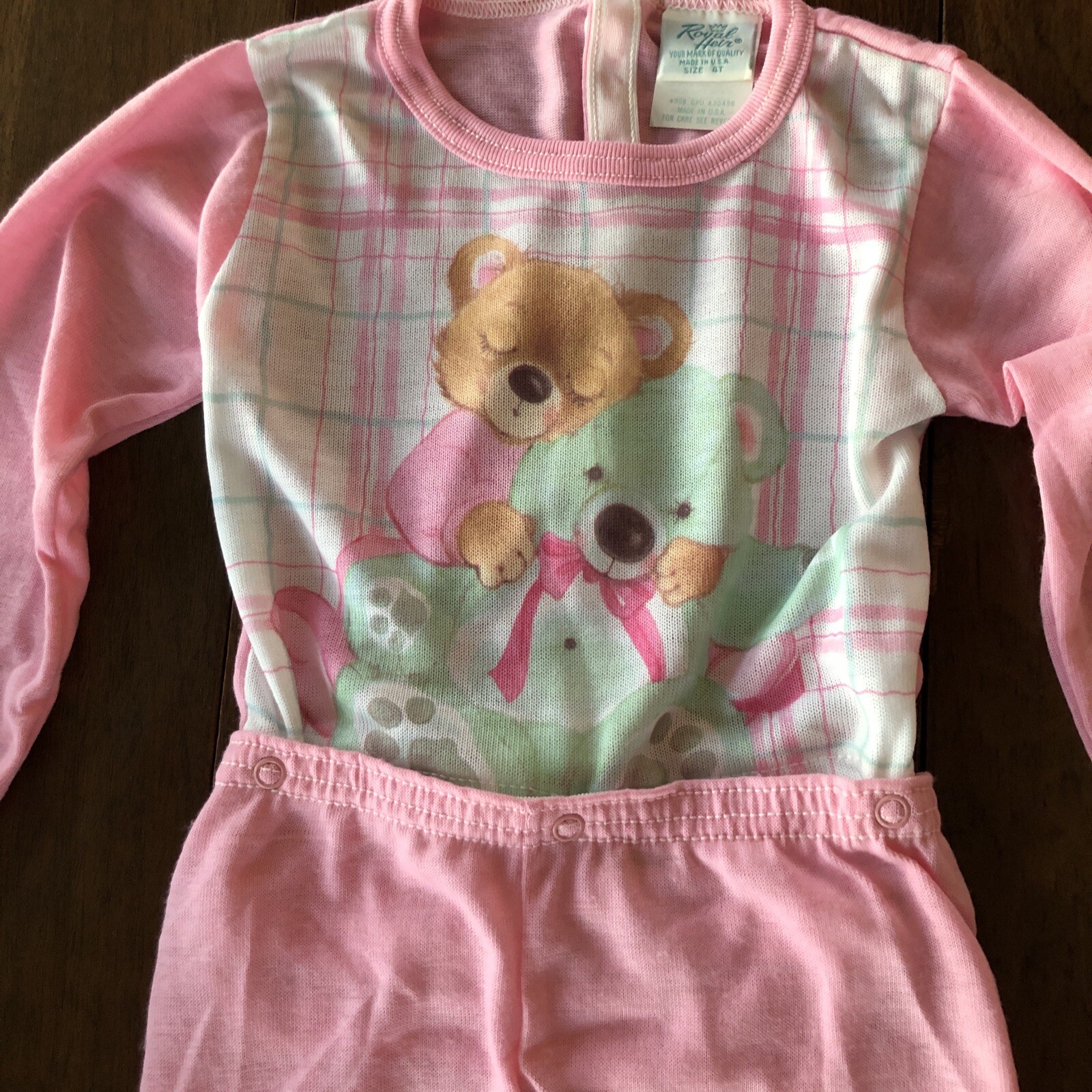 Rare Vtg Royal Heir Pink 2 Pc Snap Footie Pajamas Bears 4T See All Measurements