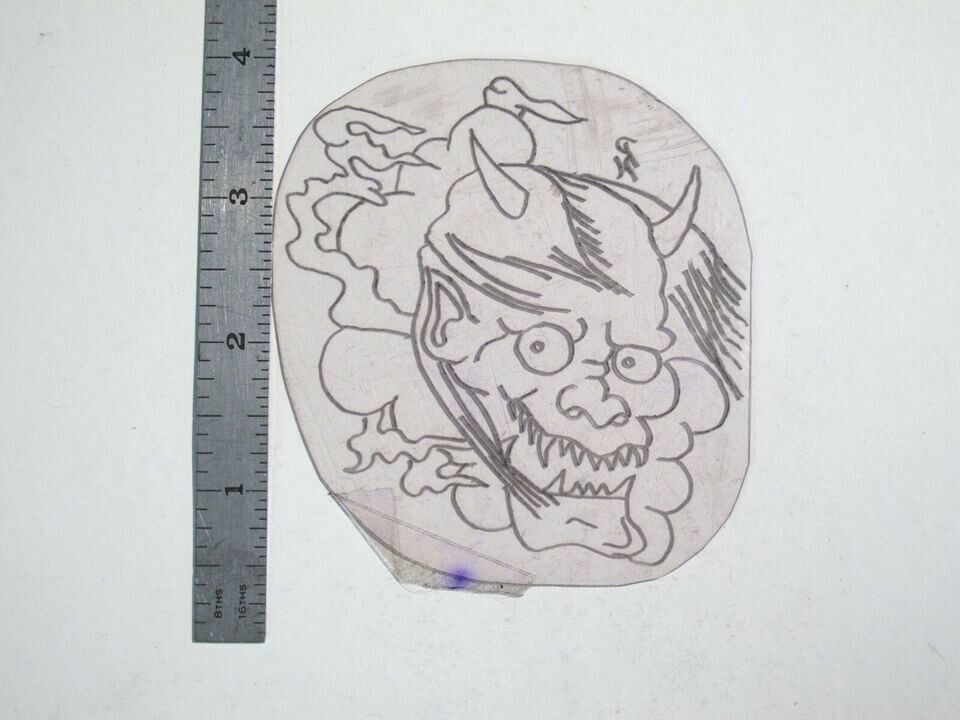 vtg 1960s 1970s Tattoo Flash acetate stencil Japanese Ghost Demon signed DD1