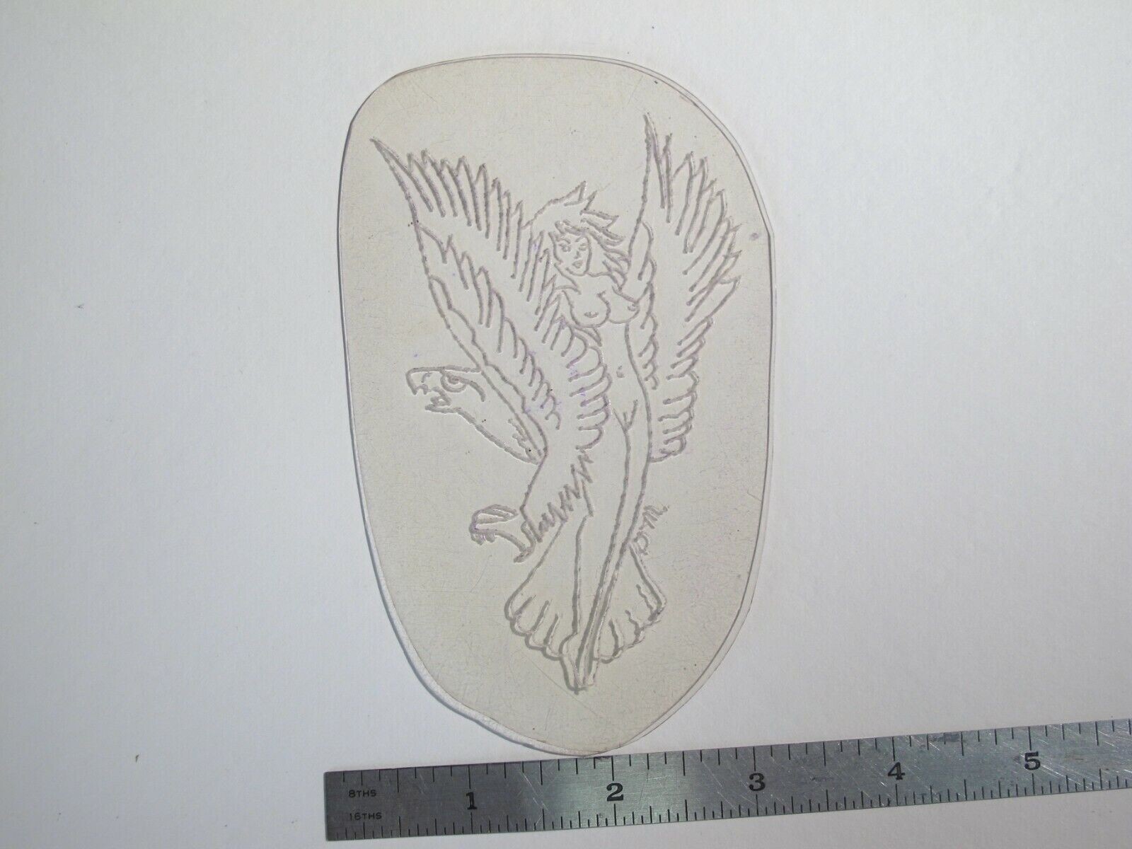 vtg 1960s 1970s Tattoo acetate stencil Eagle Girl signed WMN2
