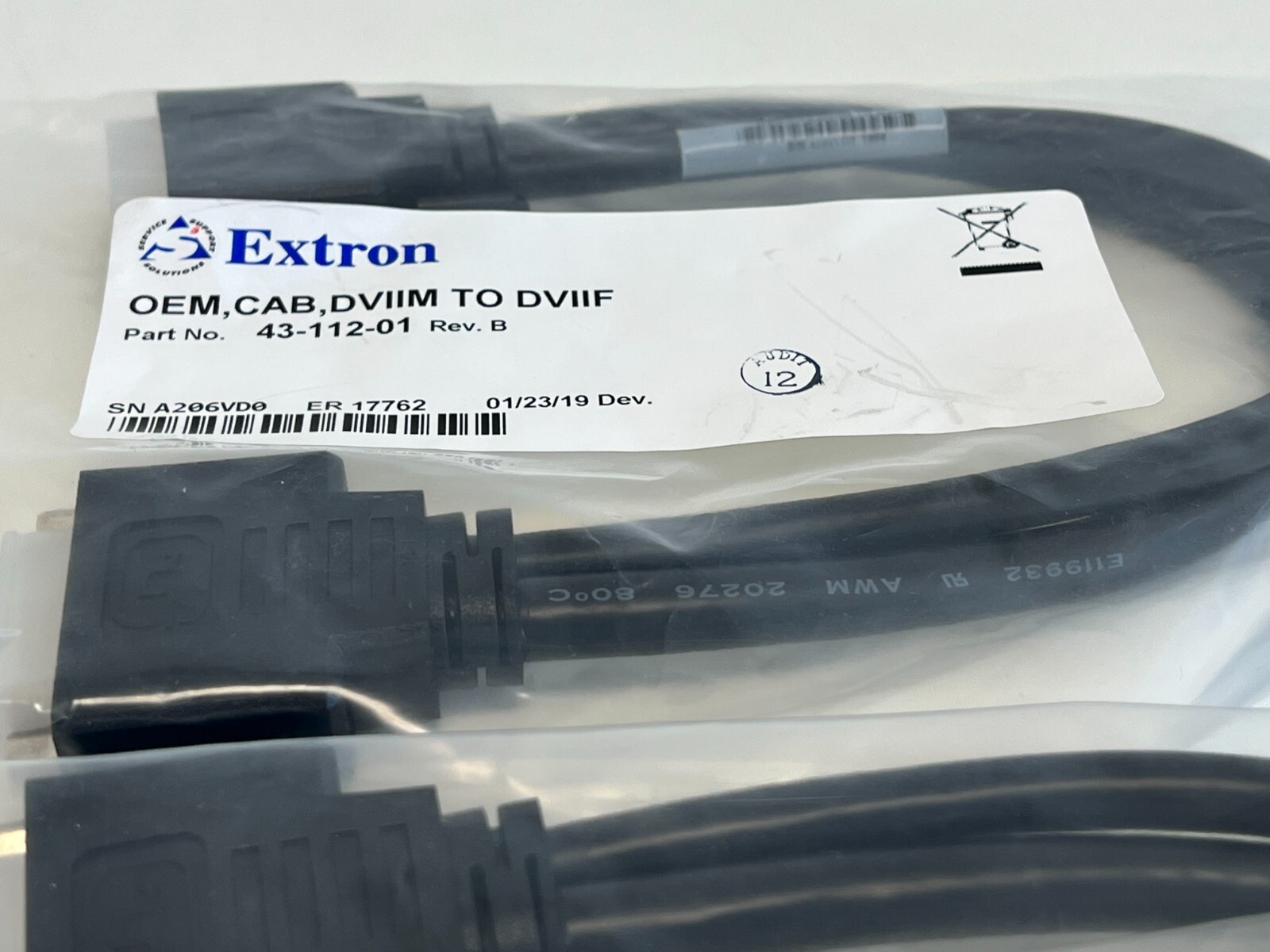 ZZ3: Lot of 2 Extron 43-112-01 OEM,CAB,DVIIM TO DVIIF Video / Monitor Cable