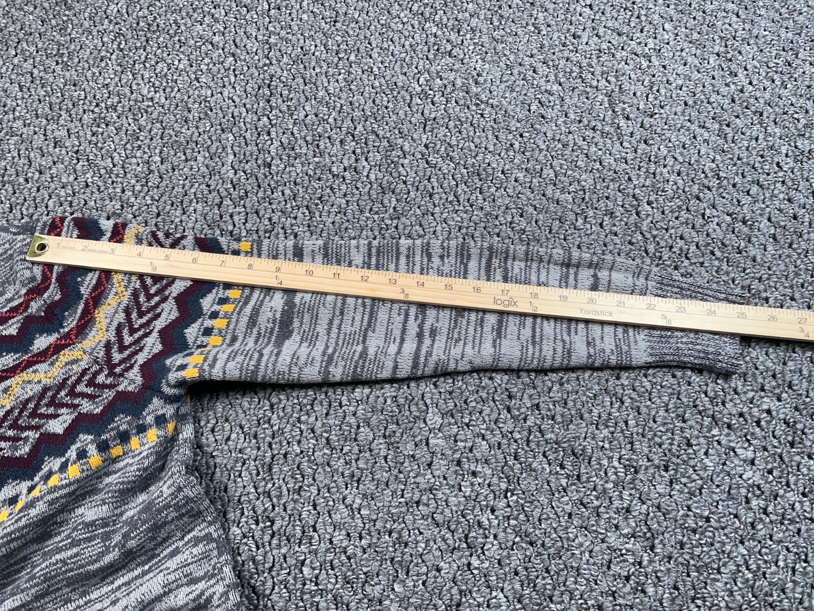 Fair Isle Pattern Sweater Adult Medium Large Tag Marled Gray Cotton Knit Ski