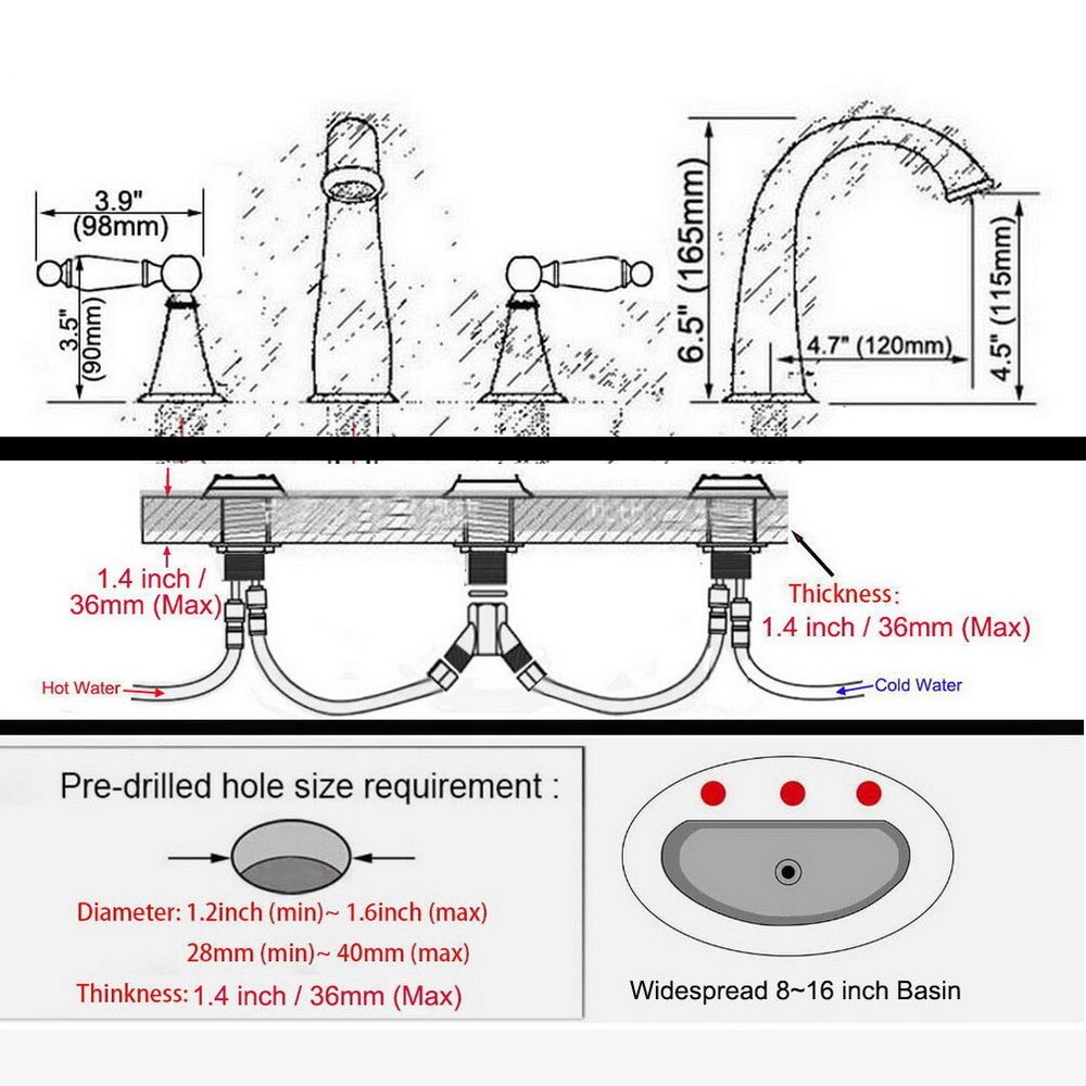 Antique Brass Deck Mounted Widespread Bathroom 3 Holes Faucet Water Taps fan082