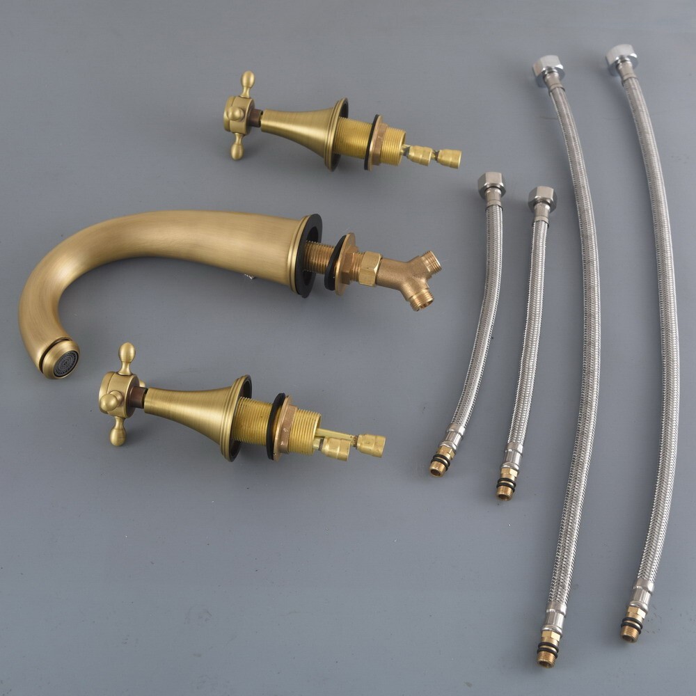 Antique Brass Deck Mounted Widespread Bathroom 3 Holes Faucet Water Taps fan080