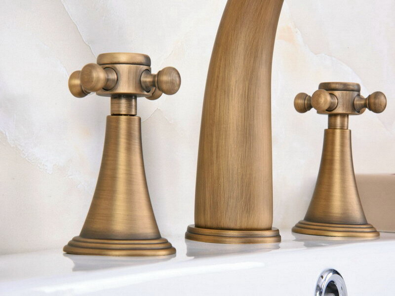 как выглядит Antique Brass Deck Mounted Widespread Bathroom 3 Holes Faucet Water Taps fan080 фото