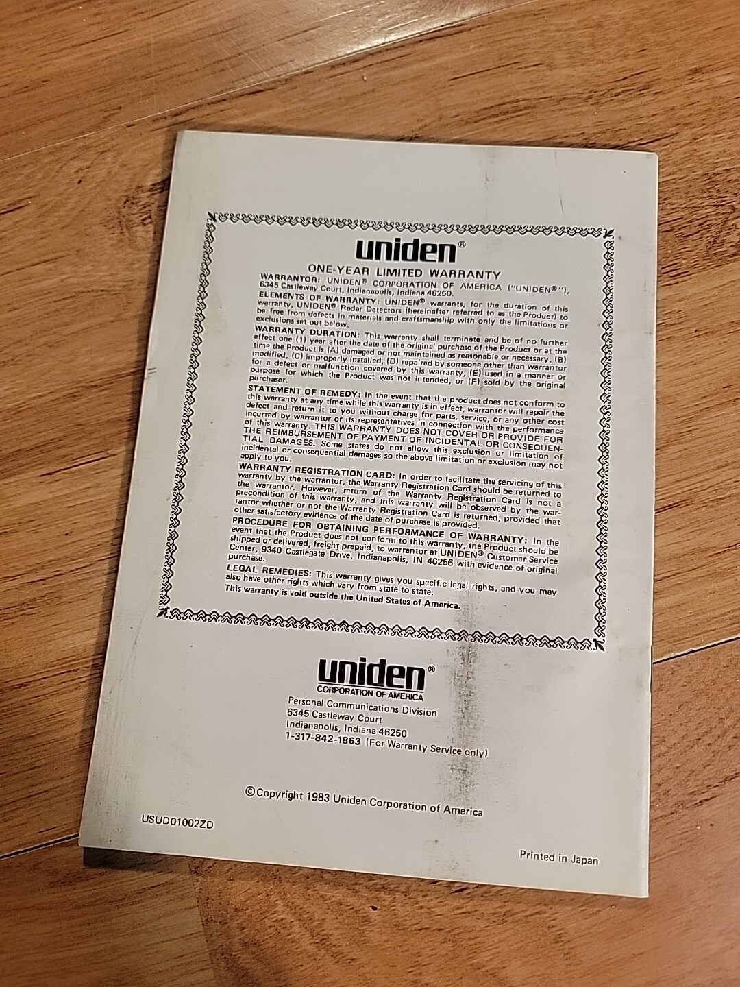 как выглядит Uniden RD-95 Radar Detector Owners Manual фото