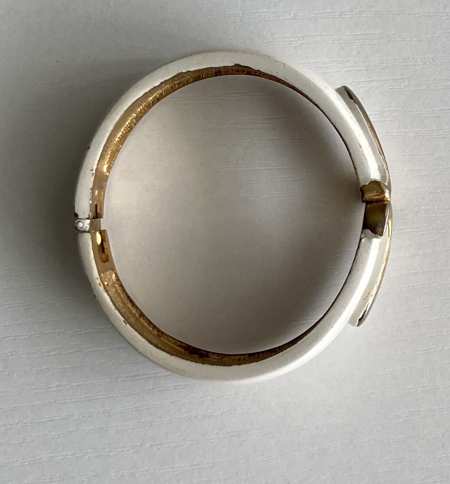 как выглядит Vintage White Enamel Gold Tone Swirl Hinged Bangle Ladies Bracelet Heavy 60.5g фото