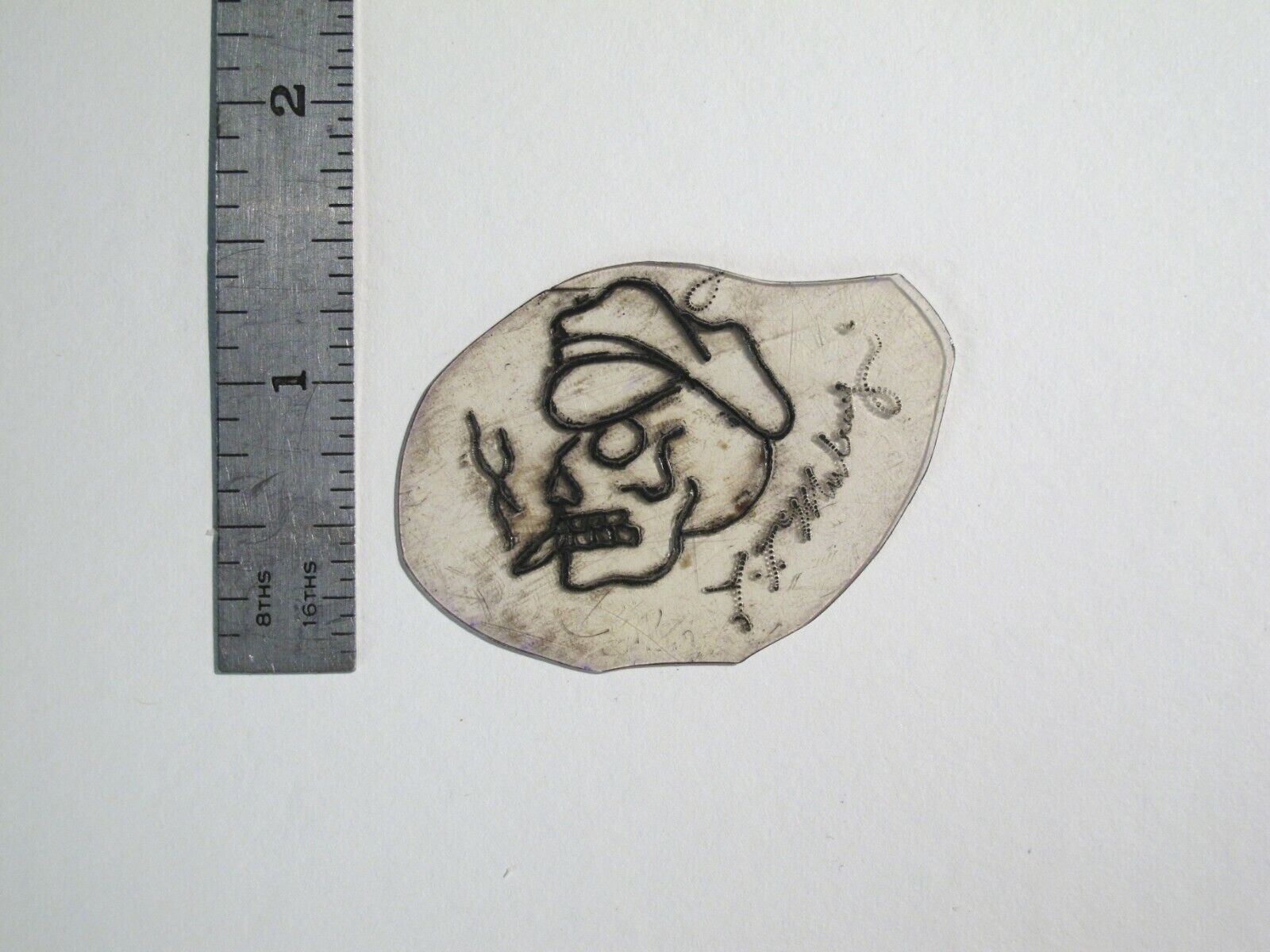 vtg 1960s Tattoo Flash acetate stencil Small Smoking Skull signed HAR2