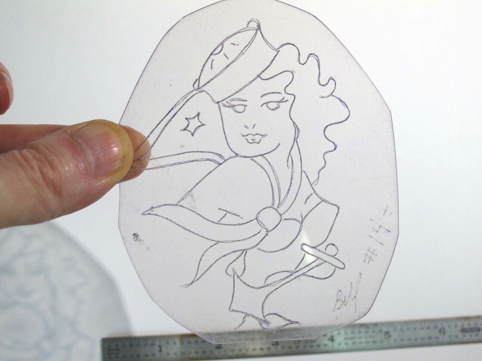 vtg 1960s Tattoo Flash acetate stencil Sailor girl v1 signed WMN1