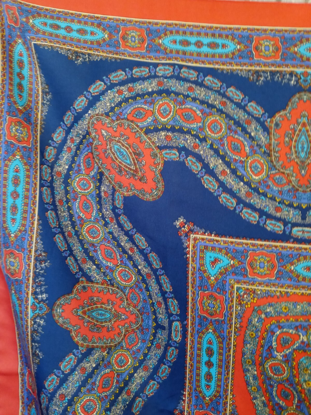 Vintage 100 Polyester Scarf Made in Italy 30 x 29 Art In Red Navy Teal Gold