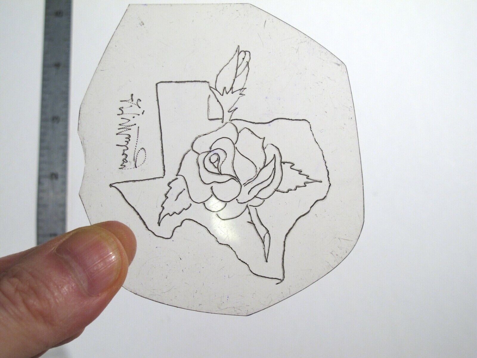 vtg 1960s Tattoo Flash acetate stencil Texas State Outline and Rose signed TX
