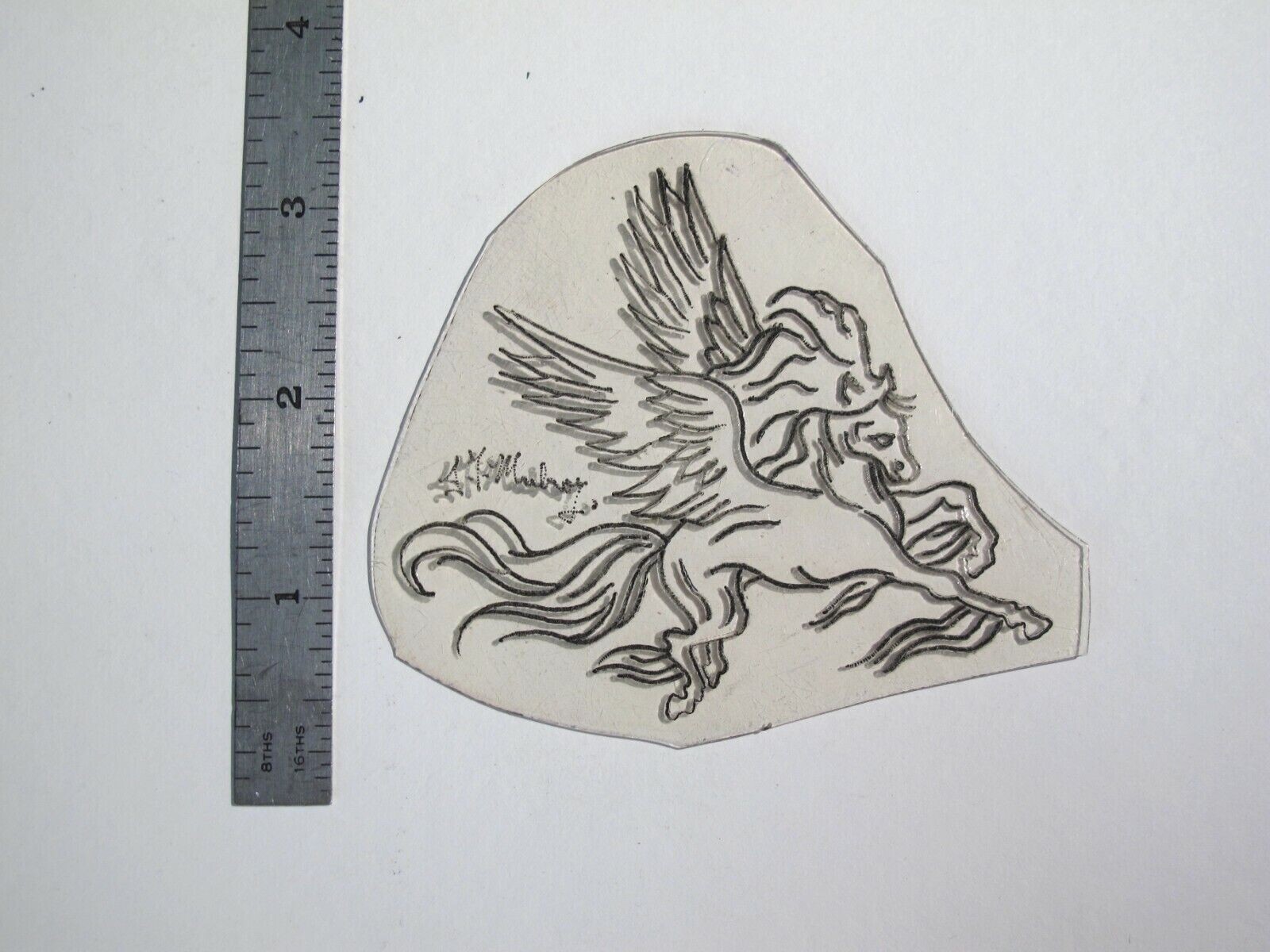 vtg 1960s 70s Tattoo Flash acetate stencil Smaller Pegasus signed HU1
