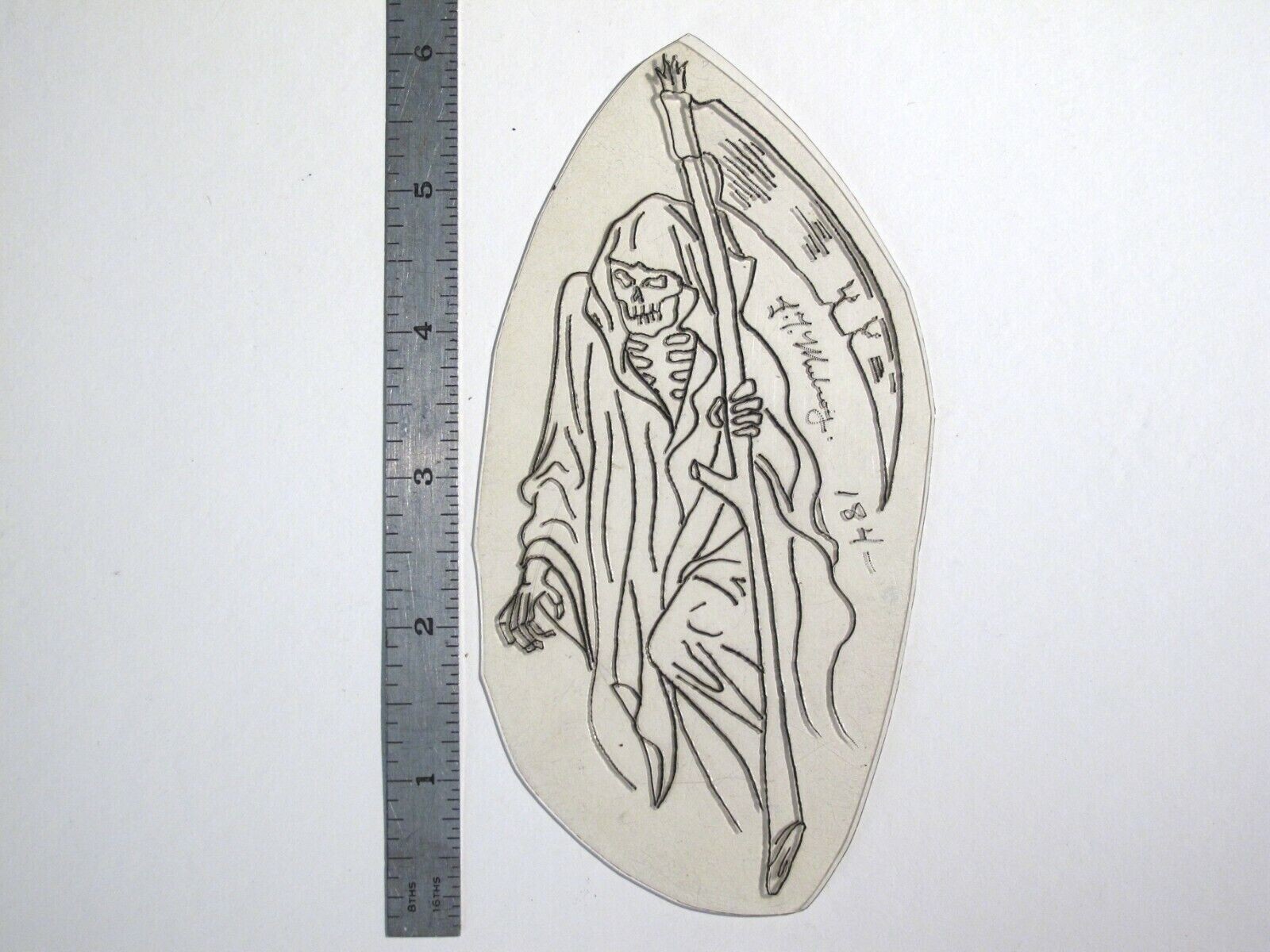 vtg 1960s 70s Tattoo Flash acetate stencil Long Staff Reaper signed REP1