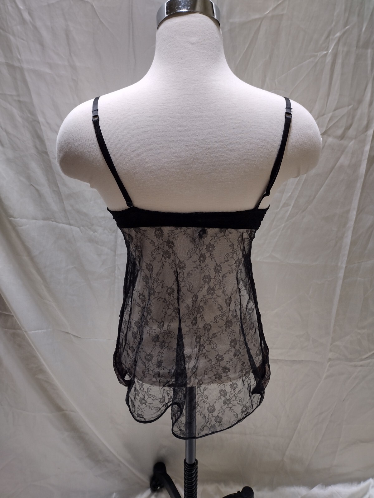 VICTORIA'S SECRET BLACK with PINK SIZE 34B BABYDOLL NIGHTGOWN