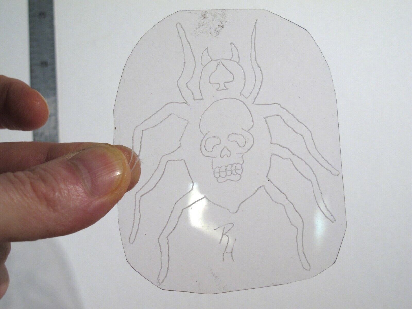 vtg 1960s Tattoo Flash acetate Stencil Ace Skull Spider signed LUK
