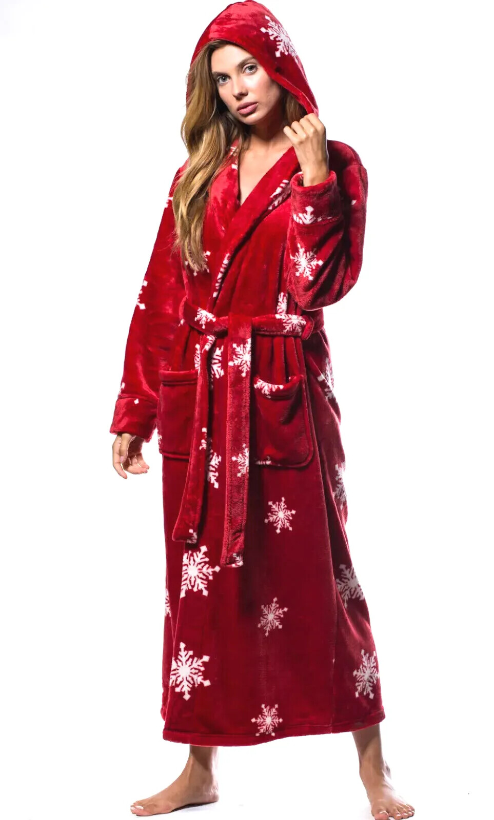 Super Soft Fleece Robe Cozy Lounge Hooded Robe Plush Warm Fleece Hood Bath Robe
