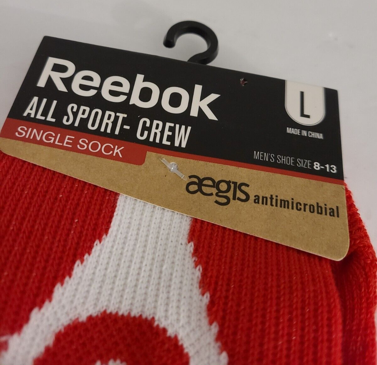 Reebok All Sport Crew Single Sock Aegis Antimicrobial Mens Size L 8-13 RED 8