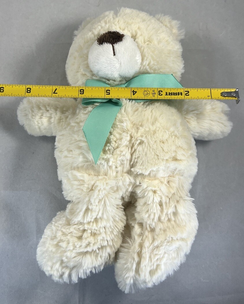 2018 Animal Adventure Bear Plush Stuffed Ivory White Cream Teal Bow Brown Nose