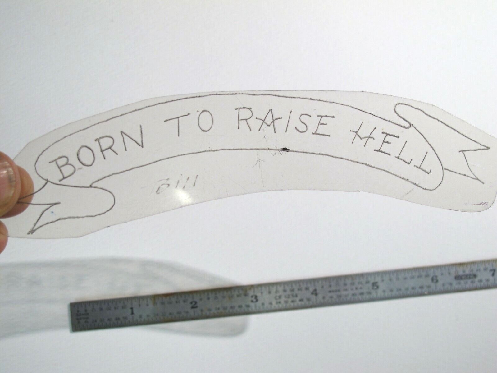 vtg 1960s 1970s Tattoo Flash acetate stencil Born Raise Hell banner signed HAR1