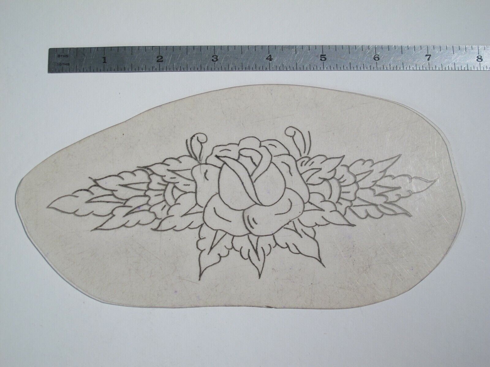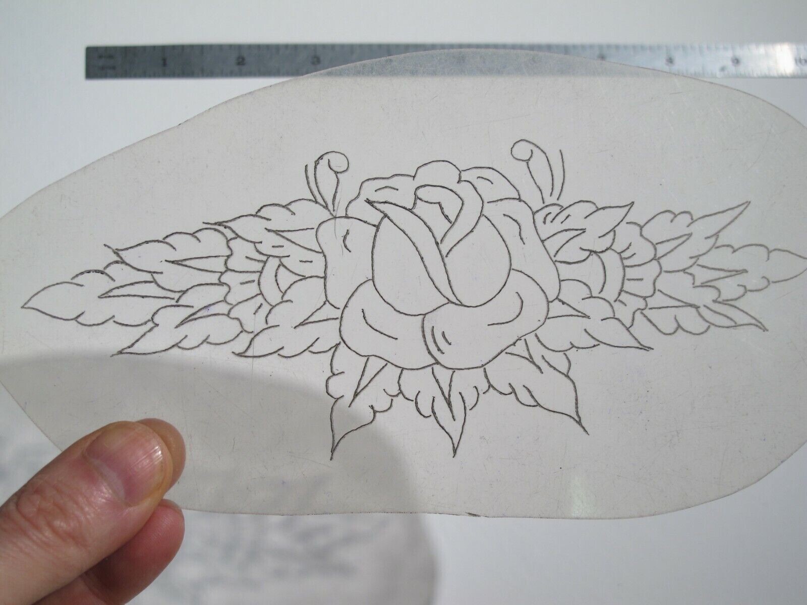 vtg 1960s 70s Tattoo Flash acetate stencil Rose and Ornate Leaves RS7