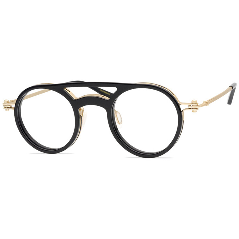 Aviator Glasses Round Acetate Metal Mixed Eyeglasses Frame Black Brillenfassung