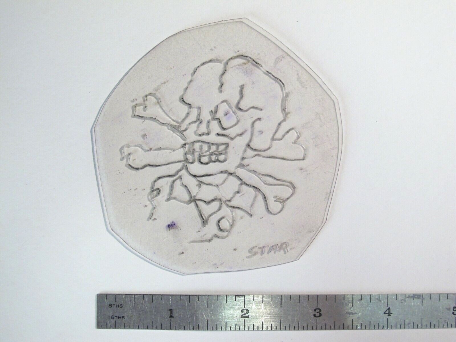 vtg 1960s 70s Tattoo Flash acetate stencil Skull and Leaves signed SK2