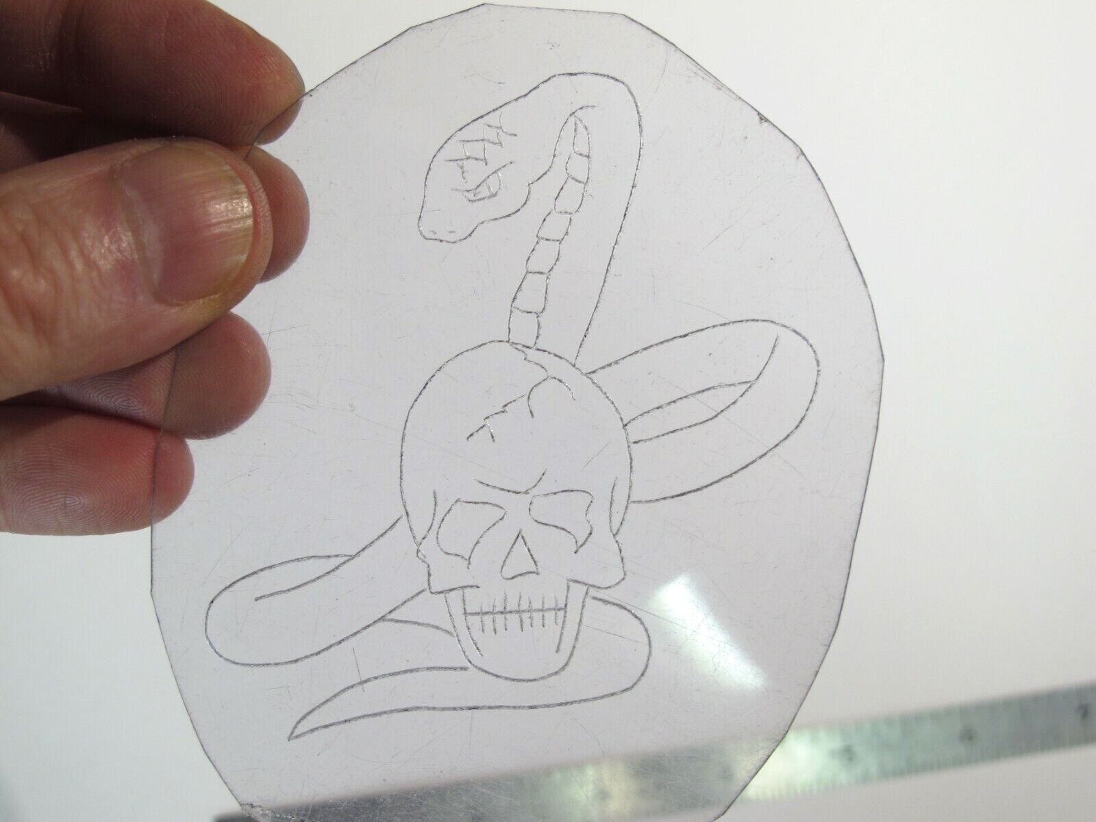 vtg 1960s 70s Tattoo Flash acetate stencil Snake and Skull v2 SK2