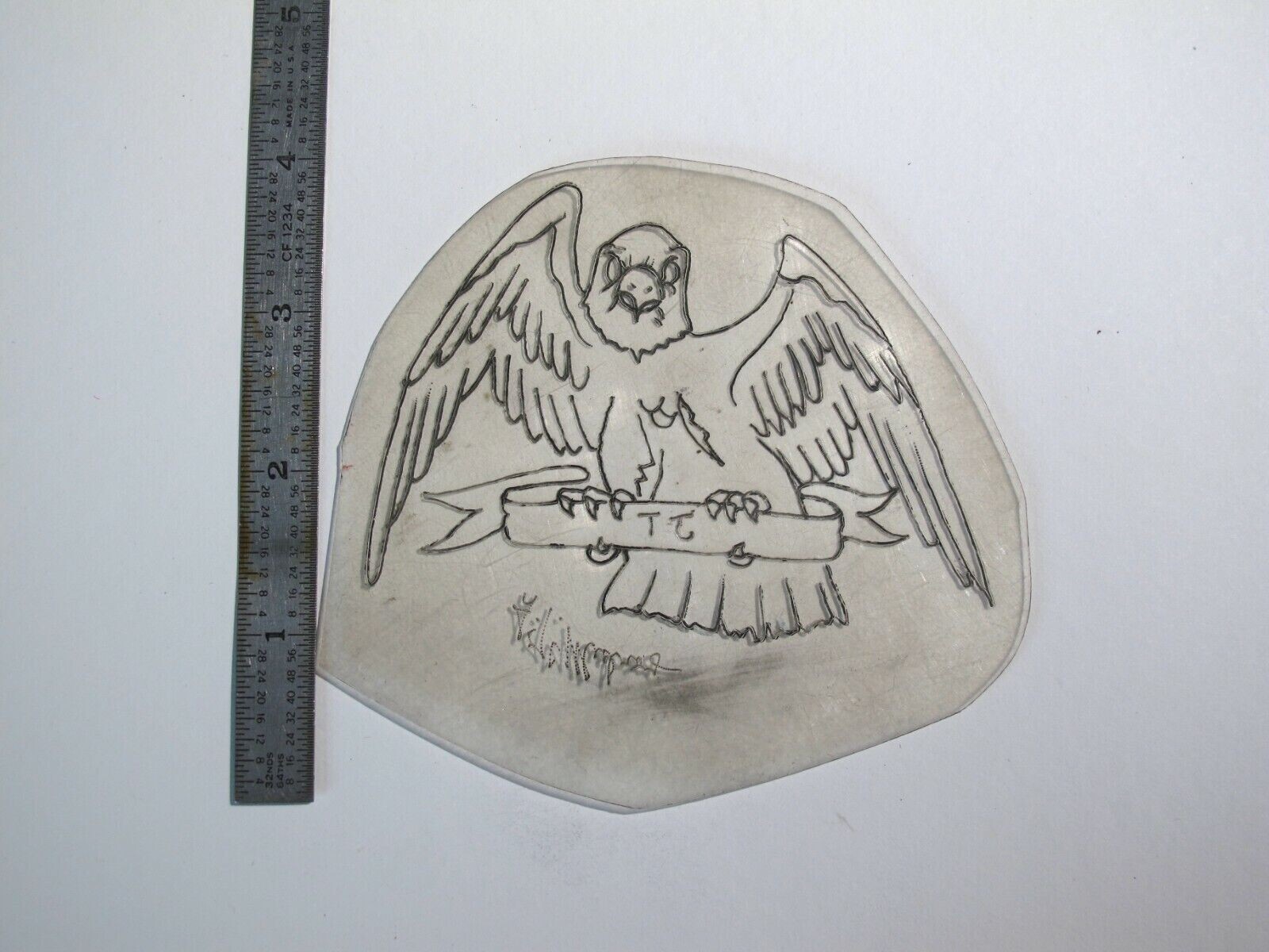 vtg 1960s 70s Tattoo Flash acetate stencil Eagle Perched on Banner signed EA2