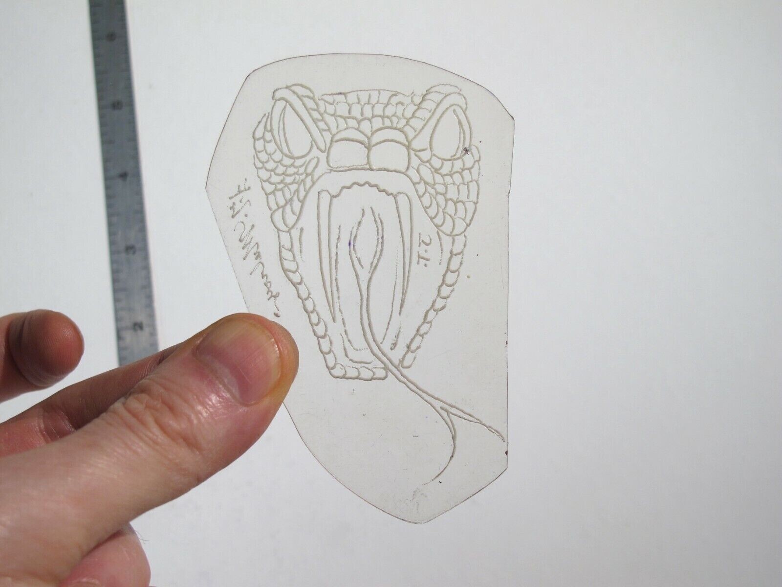 vtg 1960s 70s Tattoo Flash acetate stencil Snake Head Frontal signed SN3