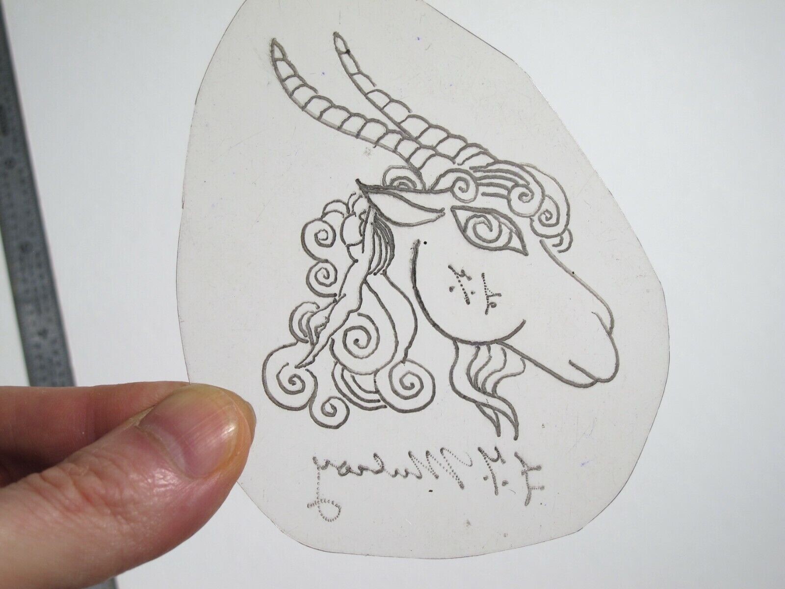 vtg 1960s 70s Tattoo Flash acetate stencil Capricorn and Girl signed Zodiac ZOD1