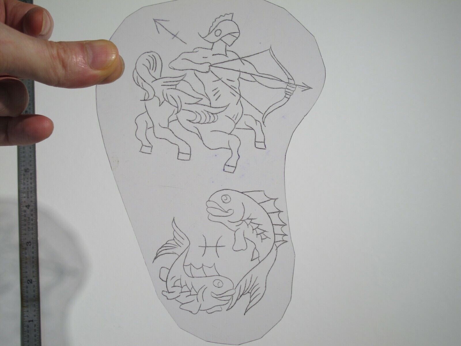 vtg 1960s 70s Tattoo Flash acetate stencil Sagittarius and Pisces Zodiac ZOD1
