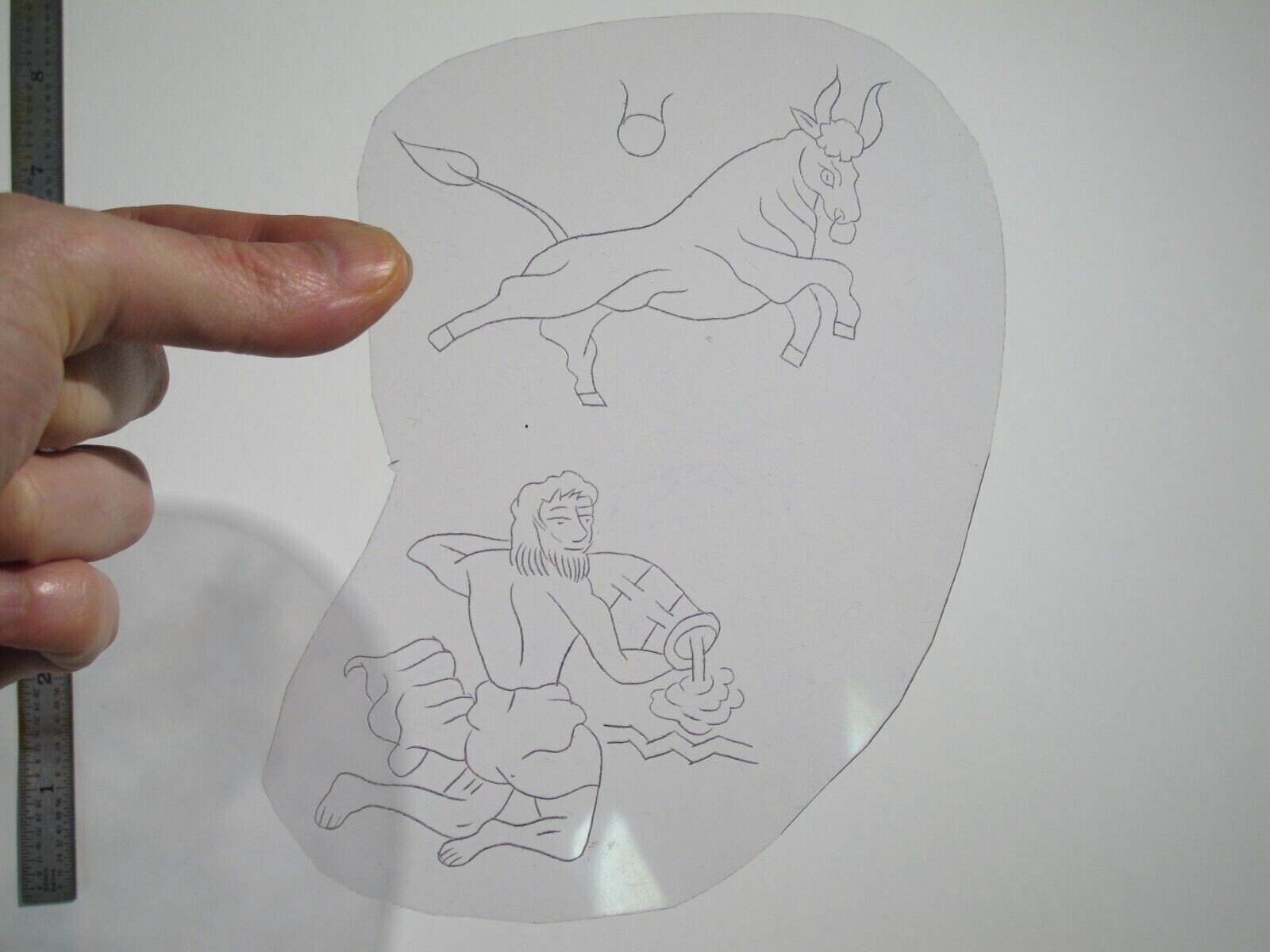 vtg 1960s 70s Tattoo Flash acetate stencil Taurus and Aquarius Zodiac ZOD1