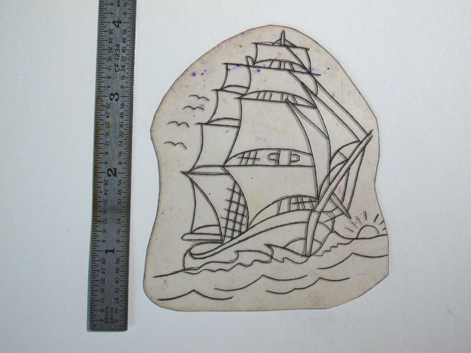 vtg 1960s 70s Tattoo Flash acetate stencil Ship and Sunrise SP1