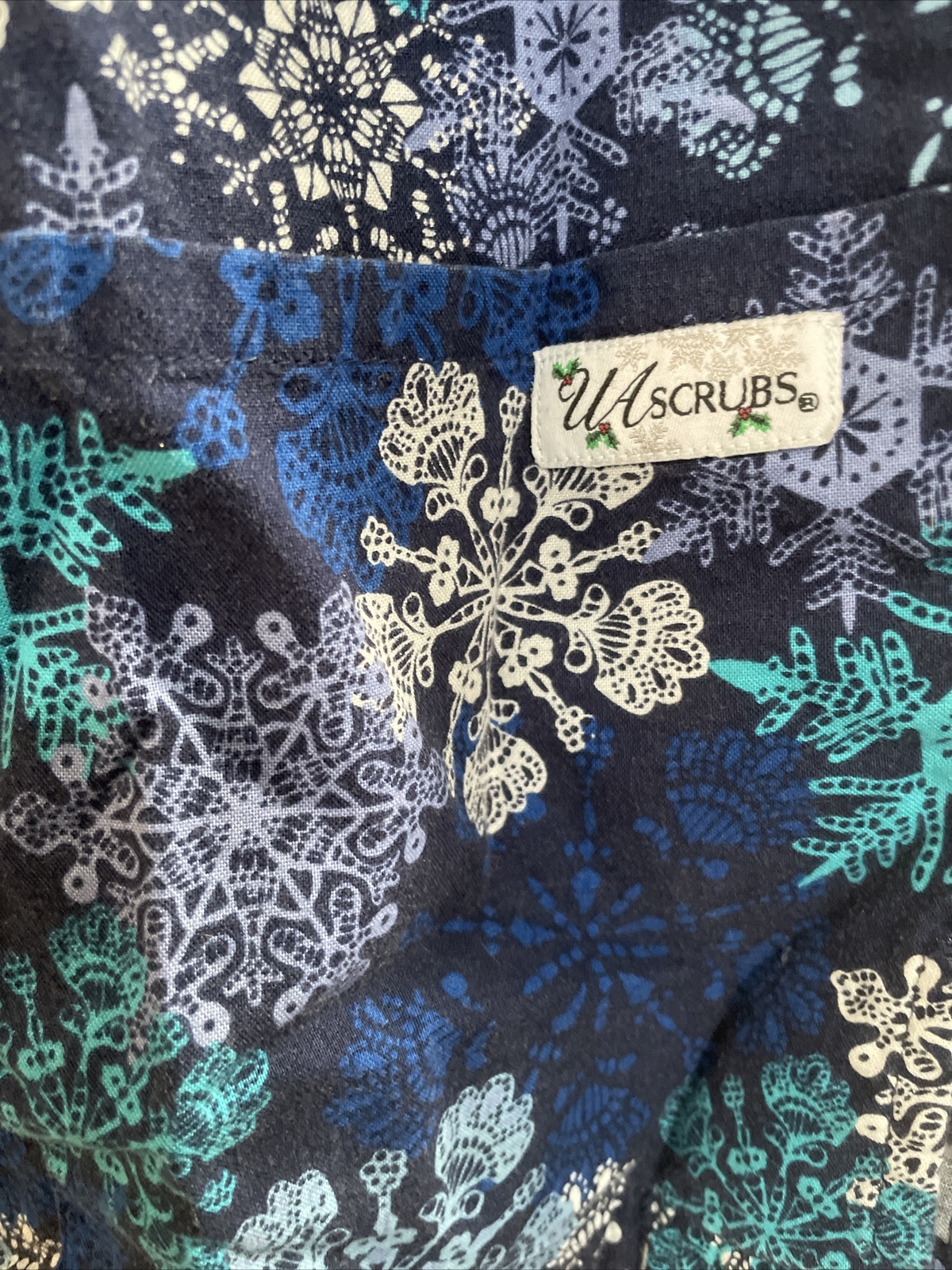 UA SCRUB TOP NURSING MEDICAL SNOWFLAKES WINTER SCENE SIZE M
