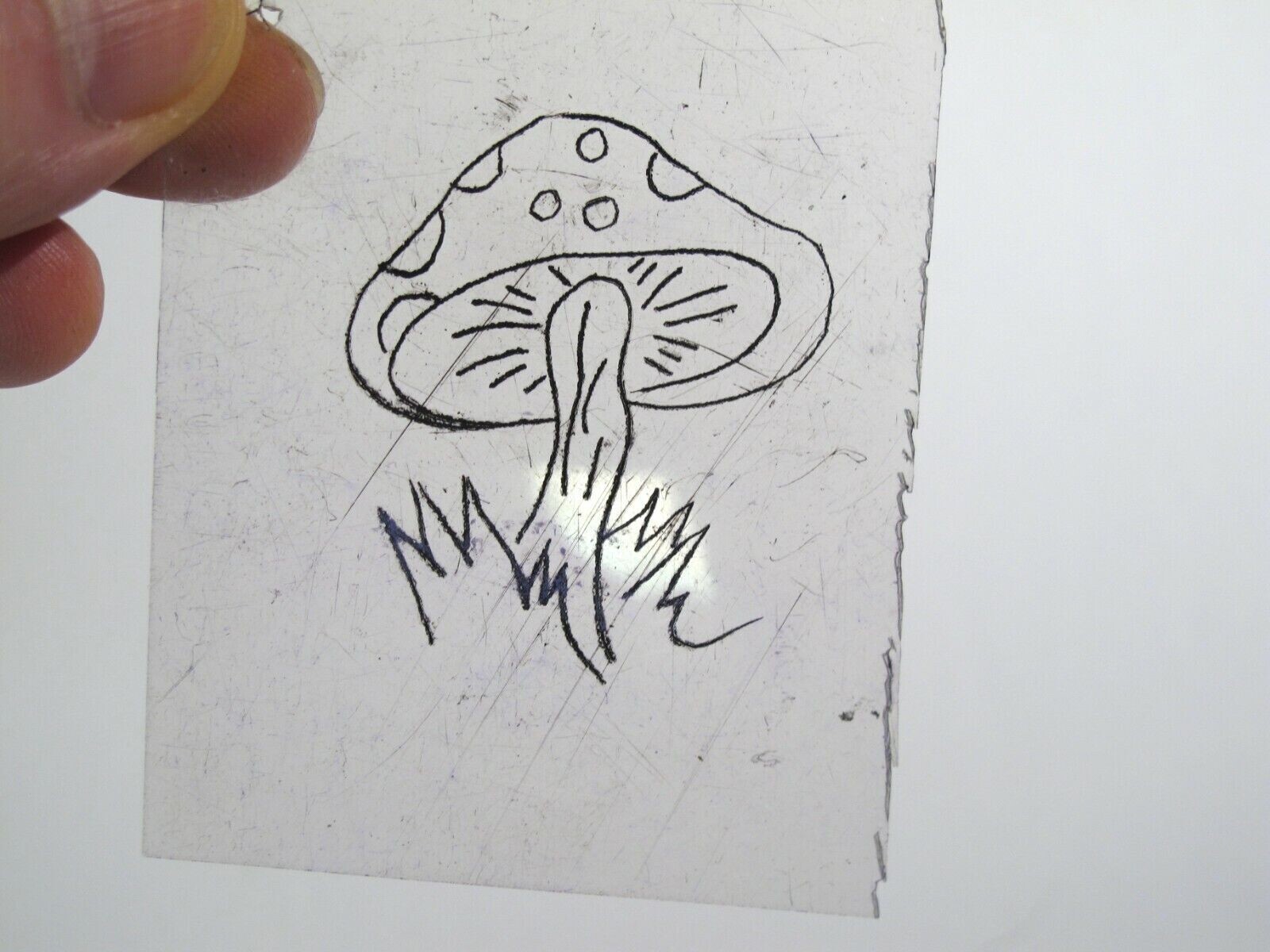 vtg 1960s 70s Tattoo Flash acetate stencil Toadstool and Grass SHR1