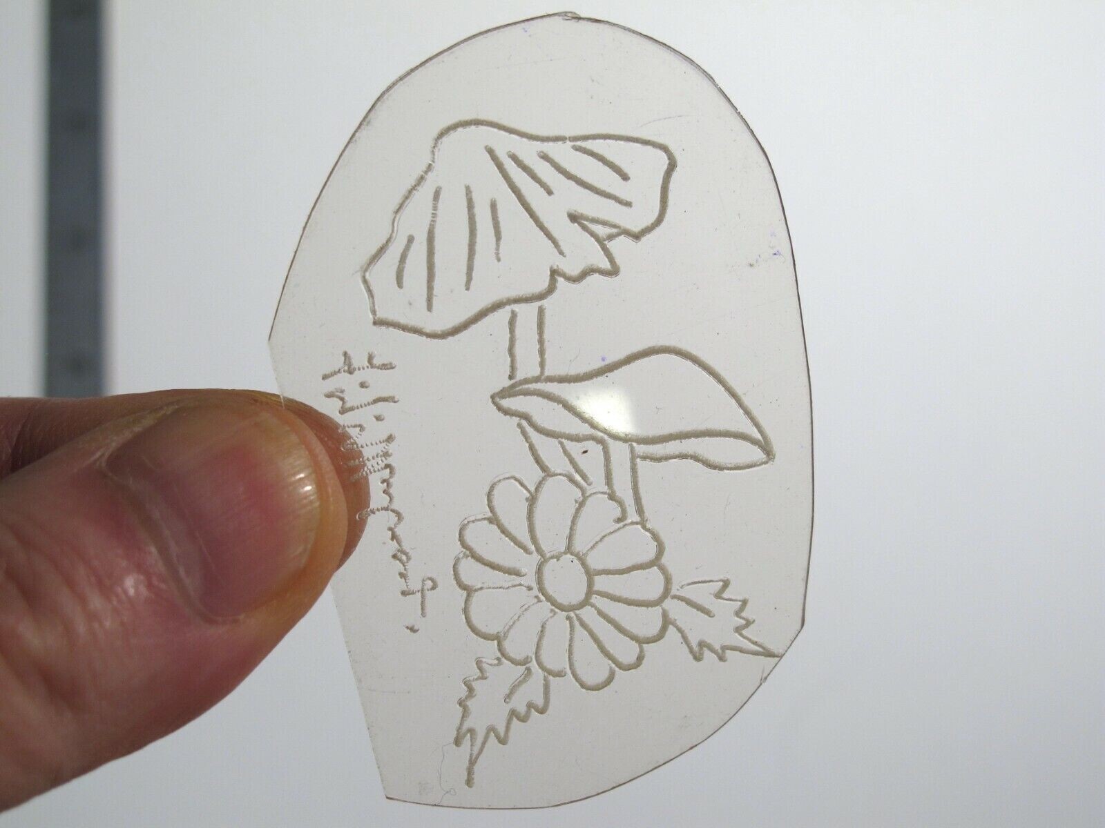 vtg 1960s 70s Tattoo Flash acetate stencil 2 Mushrooms and Flower Signed SHR1