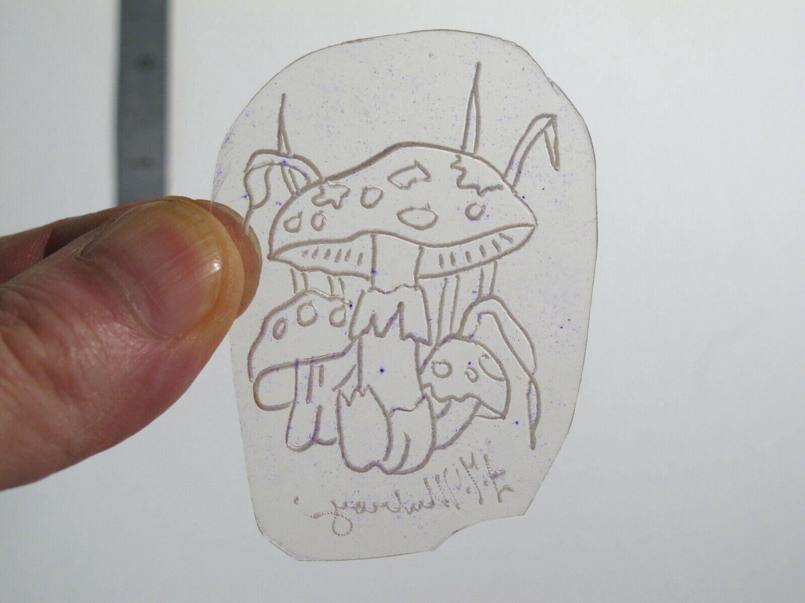 vtg 1960s 70s Tattoo Flash acetate stencil 3 Mushroom Toadstool signed SHR1