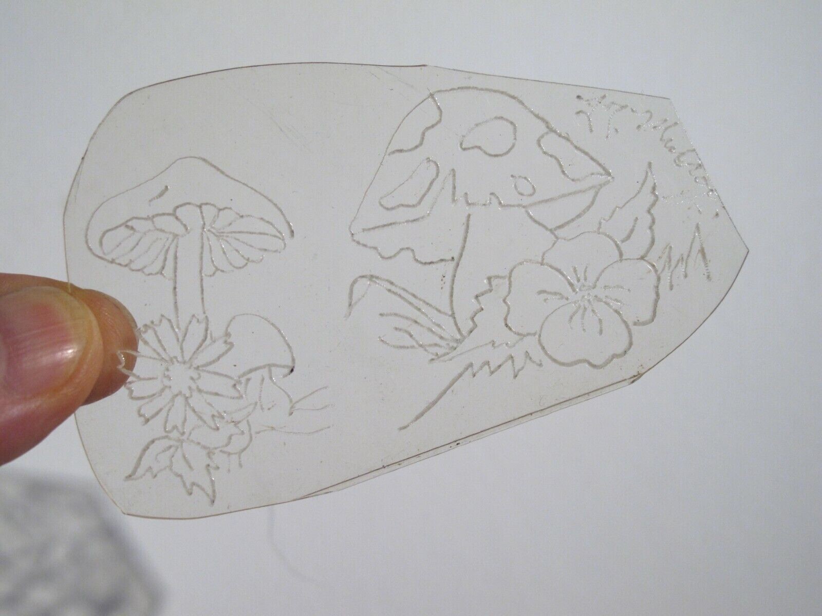 vtg 1960s 70s Tattoo Flash acetate stencil Mushrooms and Flowers signed SHR1