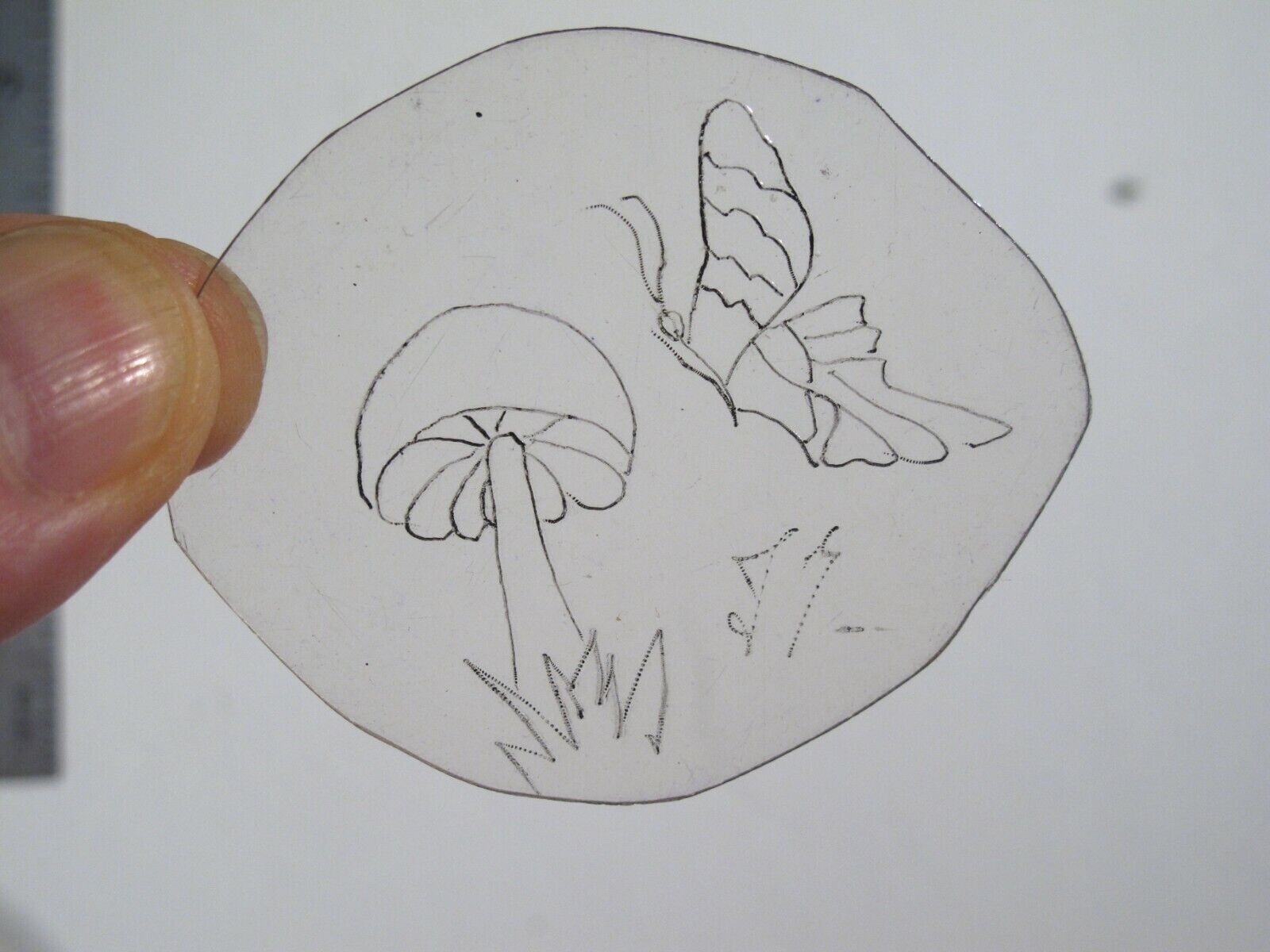 vtg 1960s 70s Tattoo Flash acetate stencil Toadstool and Butterfly signed SHR1