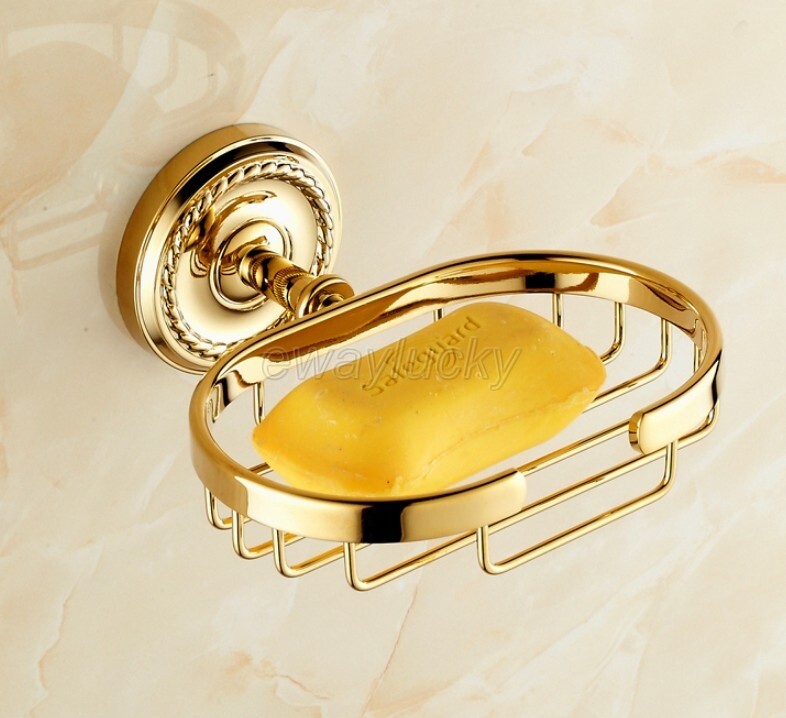 Gold Color Brass Bathroom Accessory Wall Mounted Soap Dish Holder Basket wba607